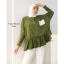 Dengan bahan baby corduroy di mix dengan katun madina di tambah ada aksen ruffle jadi bikin blouse ini tambah cantik . Blouse ini model oversized , bahannya jatuh jadi buat badan slim gak kebesaran , dan busui friendly